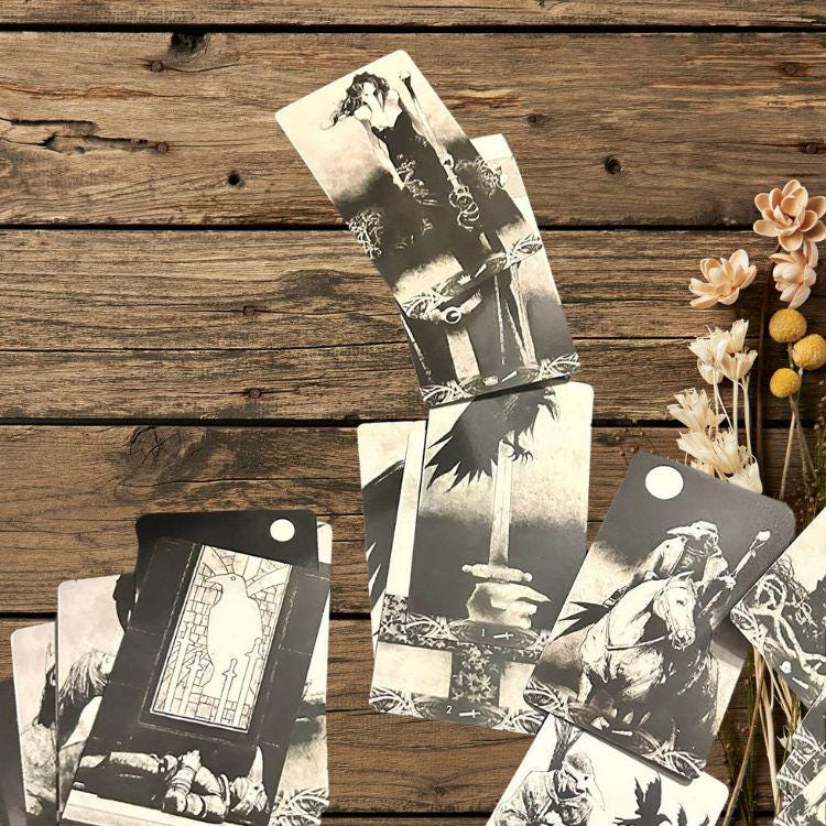 Illustrated entirely in powerful black-and-white artwork by Italian artist Corrado Roi, this deck strips tarot down to its emotional core. Each card feels like a whispered prophecy—haunting, symbolic, and deeply evocative. Whether used for shadow work, intuitive readings, or collector admiration, this deck delivers clarity through darkness.