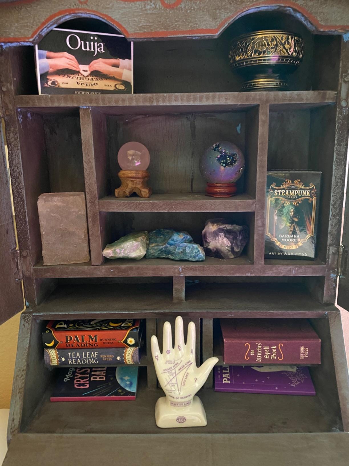 A charming miniature palmistry kit designed to introduce you to the art of palm reading while adding a mystical touch to your space.